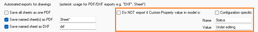 Added new option to skip drawing exports if models custom property value is something. For example “status” = “under editing”. You can of course handle this status with SWit as well..